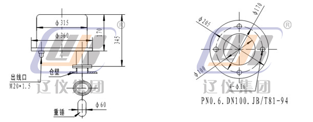 UL-3型物位開關采用擺復式傳動系統(tǒng)。擺動軸的軸端對稱掛有重錘及配重砣。無物料時,重錘失重,彈簧拉力克服了配重砣的重力使軸靜止,電機使測量撥叉張開動作,微動開關動作,發(fā)出料面信號;若物料夾住重錘下行,亦可使拔叉張開動作,發(fā)出料面信號,同時限位座靠在底板上,限制重錘繼續(xù)下行,使儀表內(nèi)部免受沖擊及拉力,切斷電機電源。