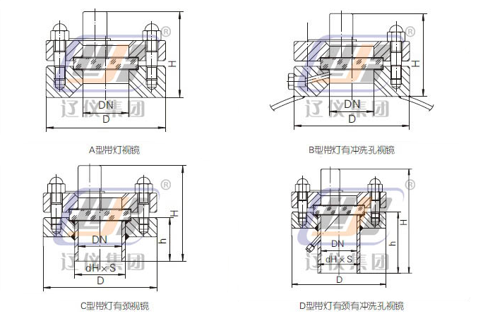 帶燈視鏡是我公司按照化工部(HG)標準生產、制造的一種設備窺視裝置。該系列產品與設備之間均采用焊接形式。該產品廣泛應用于石油、化工、電力、冶金、醫藥等領域,可直接對設備中流體的工作狀態進行觀測。